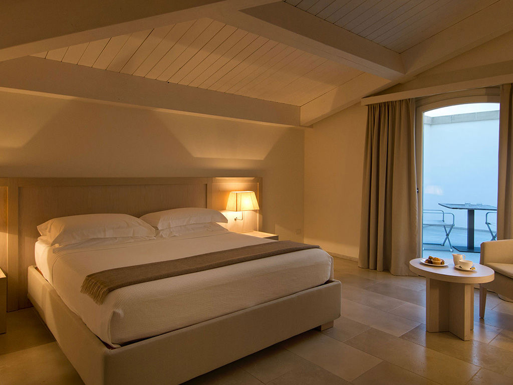 Offrono privacy ed esclusività e presentano doppi servizi con vasca e doccia. Il terrazzo privato è attrezzato per il relax all’aperto e regala scorci panoramici di quiete assoluta.